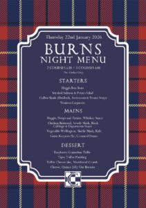 To complete the experience, the night will feature a traditional bagpipe performance from The Cotswolds Bonnie Piper, filling the room with the unmistakable sound of Scotland. We’ll also honour the great poet himself with a dramatic reading to address the haggis — a moment full of character, ritual and celebration.