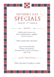 Alongside our classic Sunday Roasts, enjoy our Mother’s Day menu of seasonal specials.