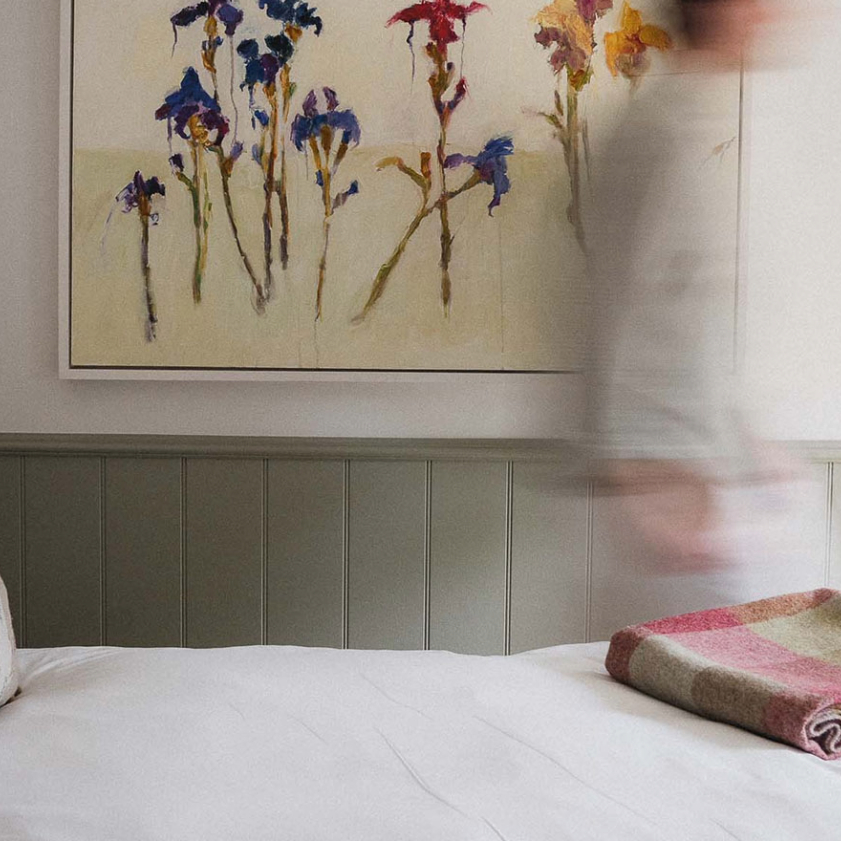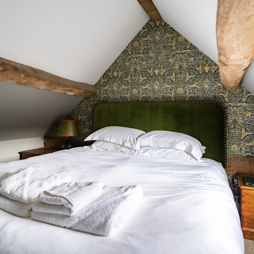 Wake up to handcrafted wallpaper, exposed stone walls, bold bedheads and swathes of curtains. It’s the most luxurious place to swan off to.